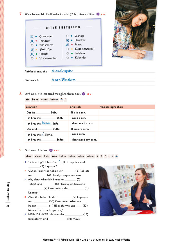 In ansprechend gestalteten und abwechslungsreichen Übungen wird der Lernstoff aus dem Kursbuch trainiert – gekennzeichnet mit den Kategorien Wörter, Grammatik und Kommunikation.
