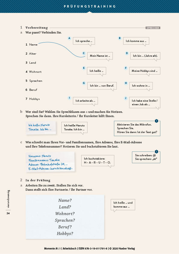 Das Prüfungstraining besteht aus einer vorbereitenden Aufgabe und einer Aufgabe, die eng an das jeweilige Prüfungsformat angelehnt ist.